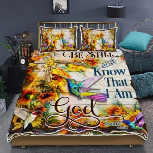 Hummingbird. Be Still And Know That I Am God Quilt Bedding Set UXGO33BD